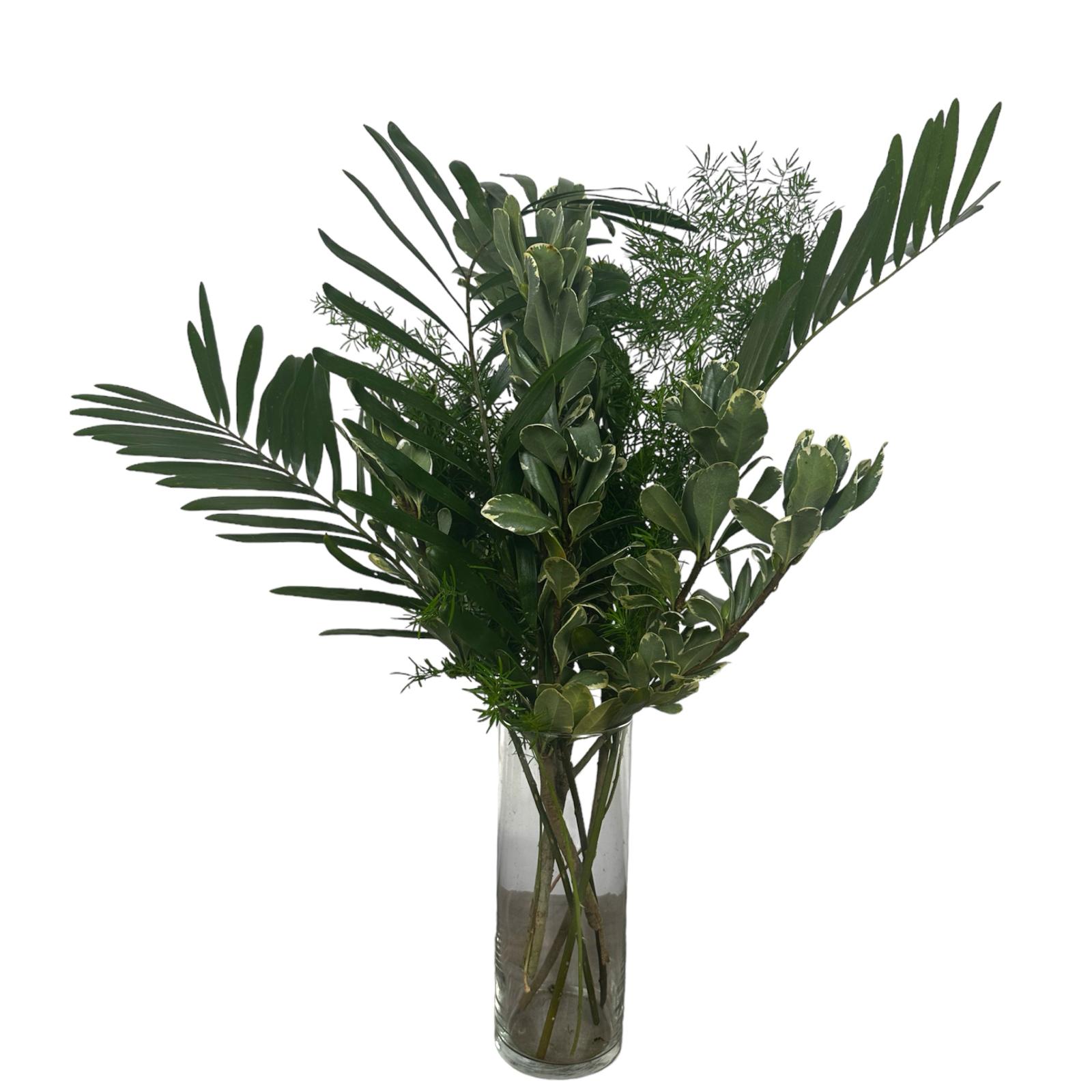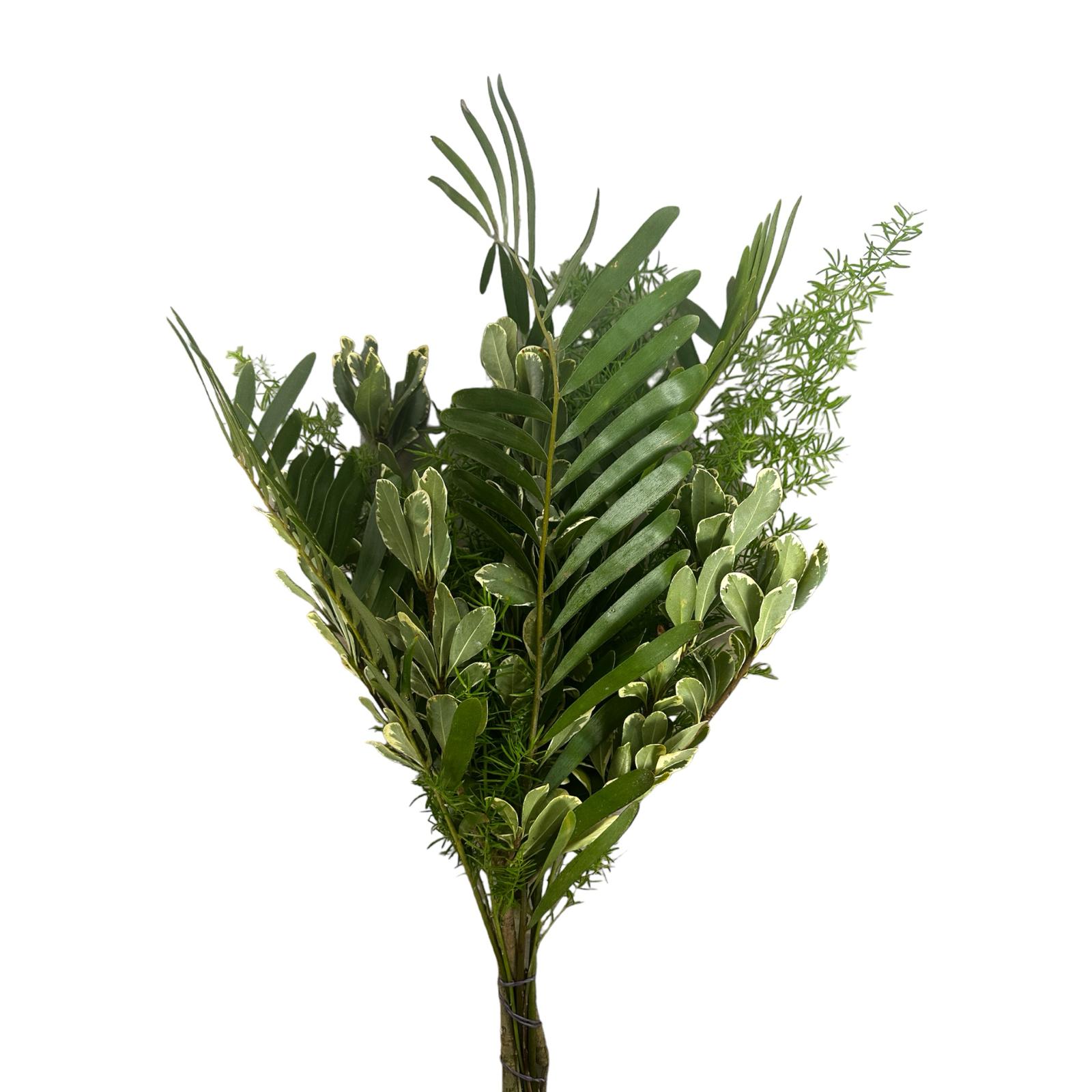 Field Mix drop‑in bouquet featuring fresh seasonal greenery. Each bouquet includes: