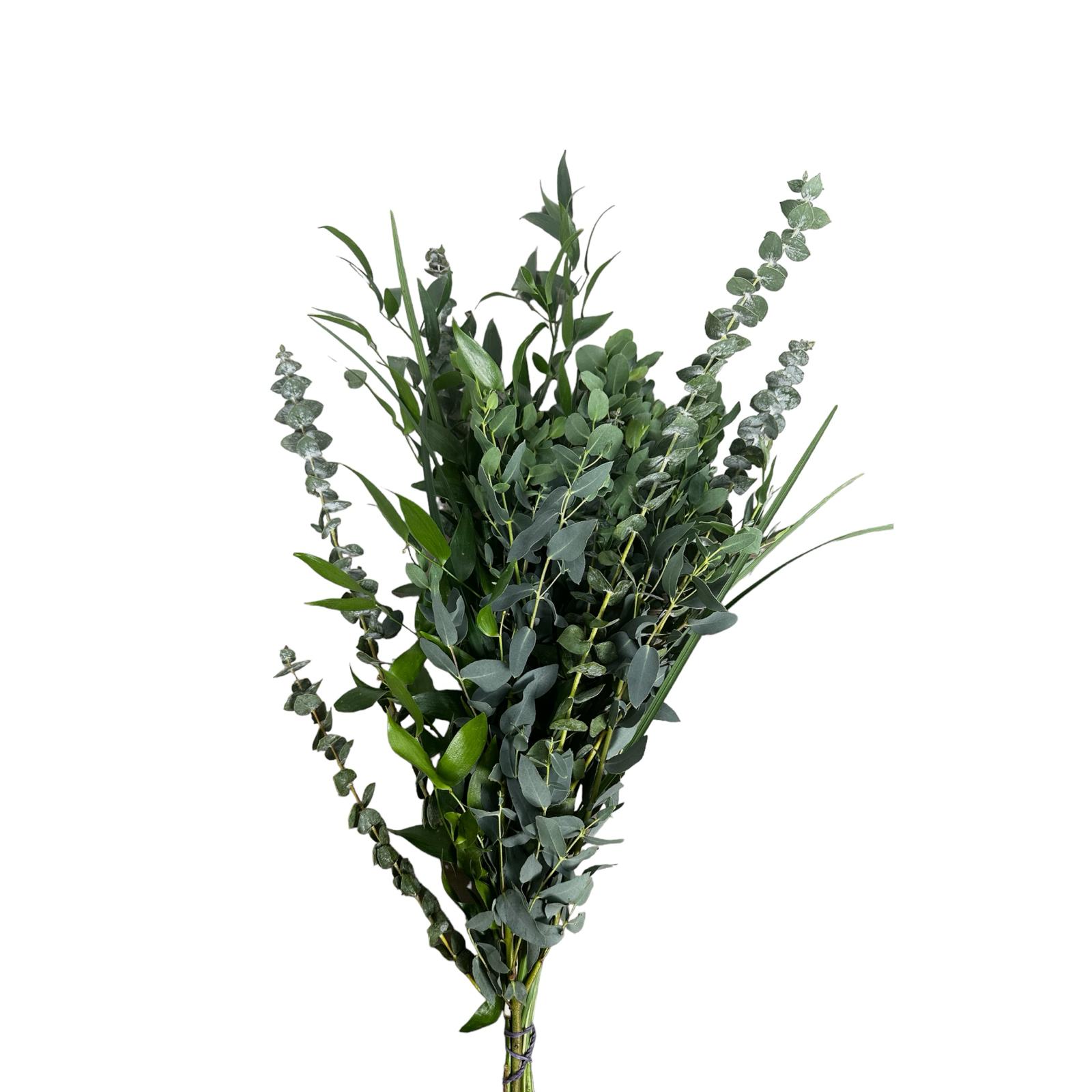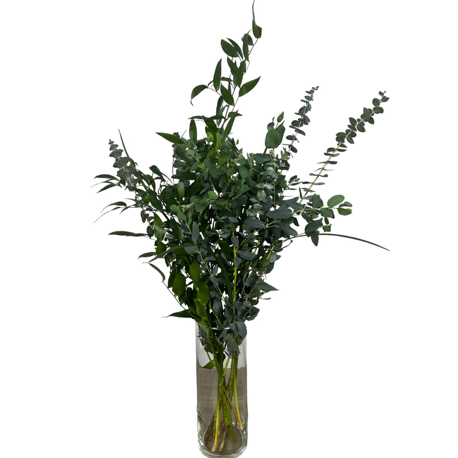 Full and Fancy drop‑in bouquet featuring fresh seasonal greenery. Each contains: